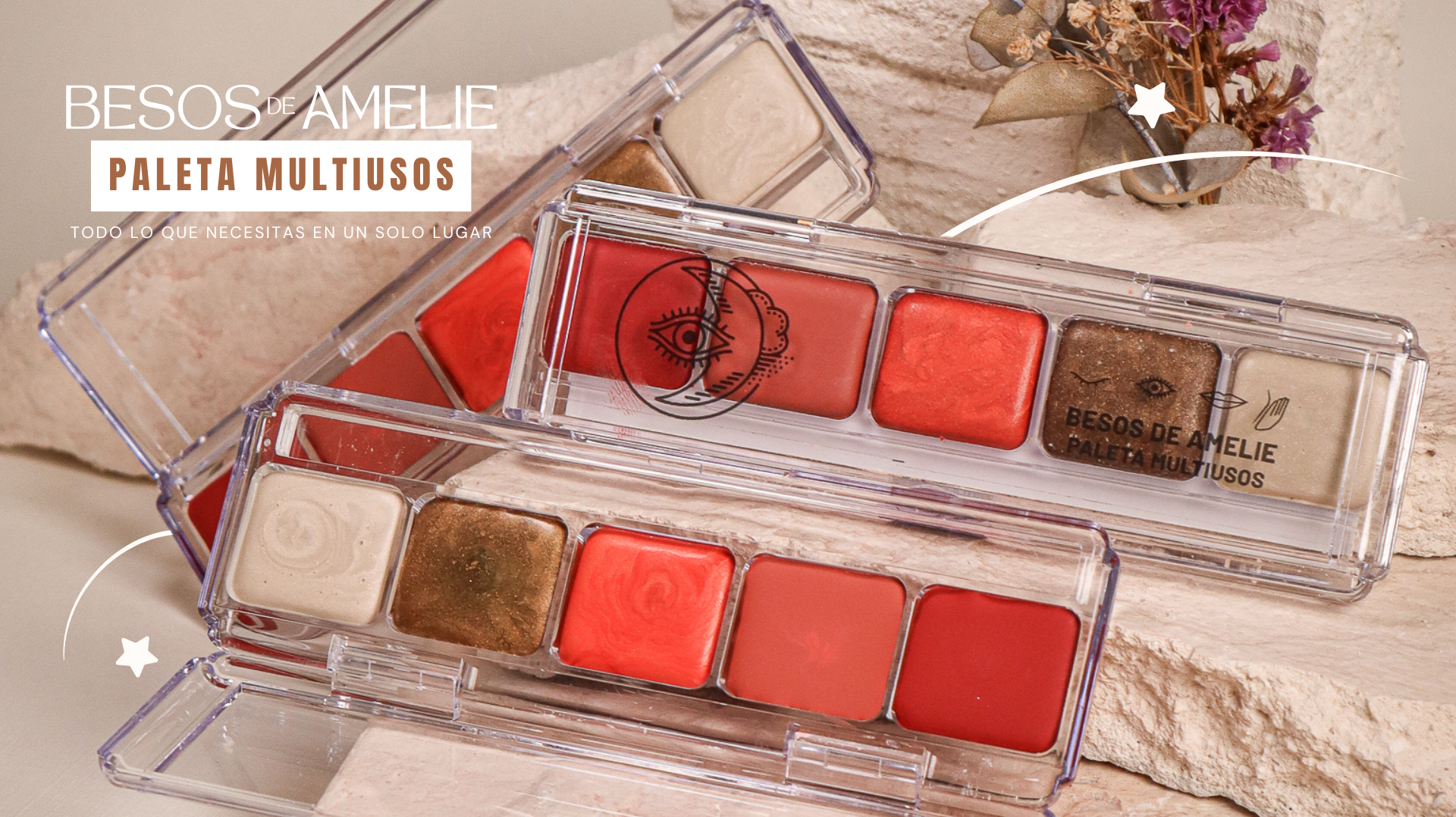 Besos de Amelie es un must en tu cosmetiquera, un 4 en 1 que te encantará. Usa los diferentes tonos y aplícalos en ojos, labios y mejillas y combínalos como más te guste.